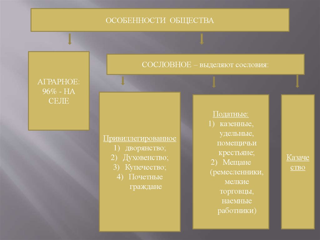 ОСОБЕННОСТИ ОБЩЕСТВАСОСЛОВНОЕ – выделяют сословия: