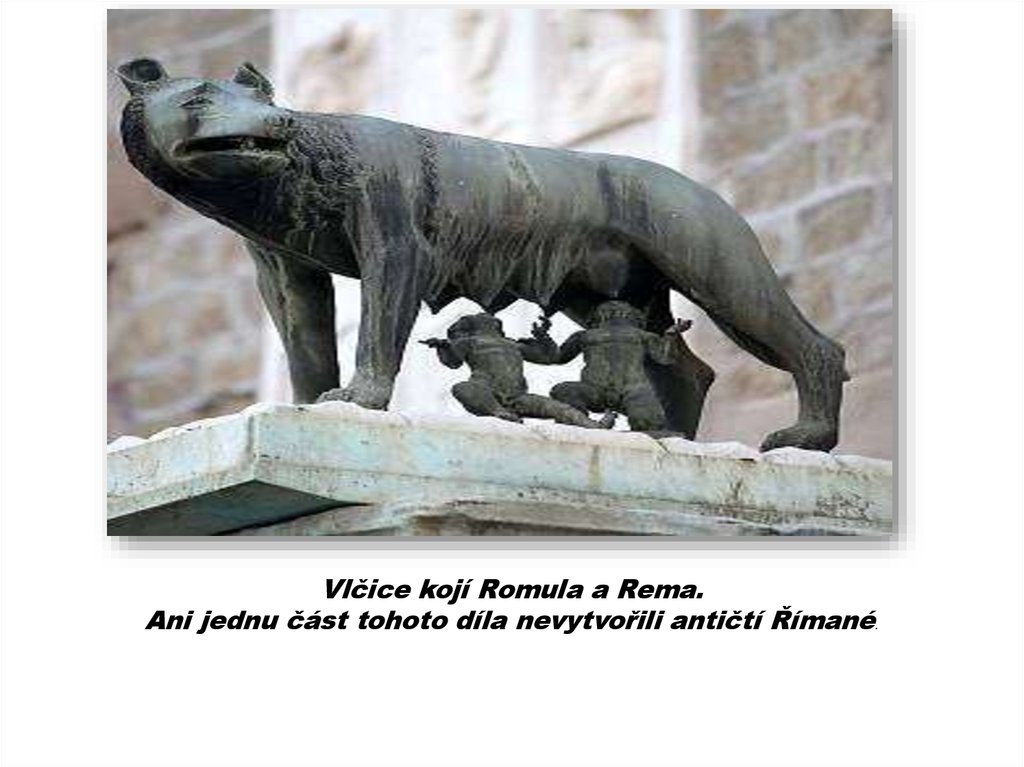 Vlčice kojí Romula a Rema.Ani jednu část tohoto díla nevytvořili antičtí Římané.