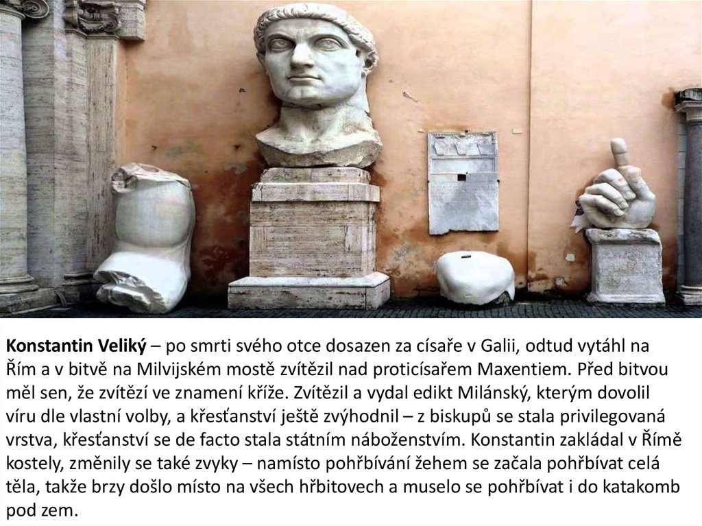 vrstva, křesťanství se de facto stala státním náboženstvím. Konstantin zakládal v Římě
