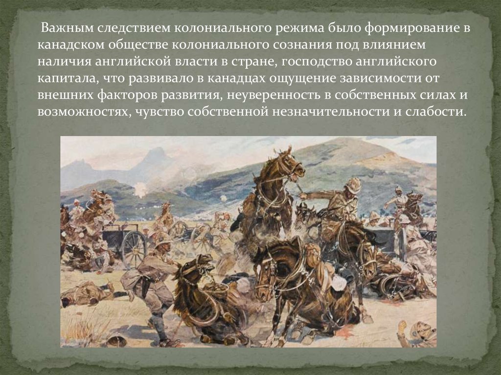 Важным следствием колониального режима было формирование вканадском обществе колониального сознания под влиянием