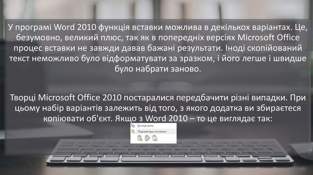 У програмі Word 2010 функція вставки можлива в декількох варіантах. Це,безумовно, великий плюс, так як в попередніх версіях Microsoft Office