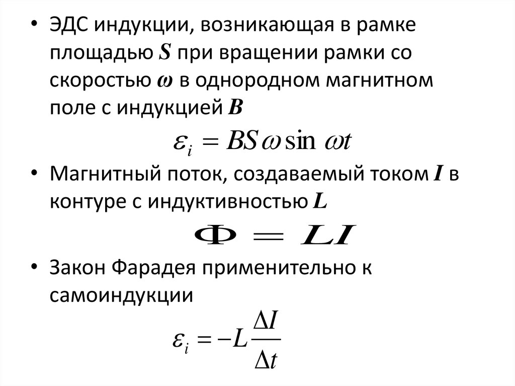 • ЭДС индукции, возникающая в рамкеплощадью S при вращении рамки со