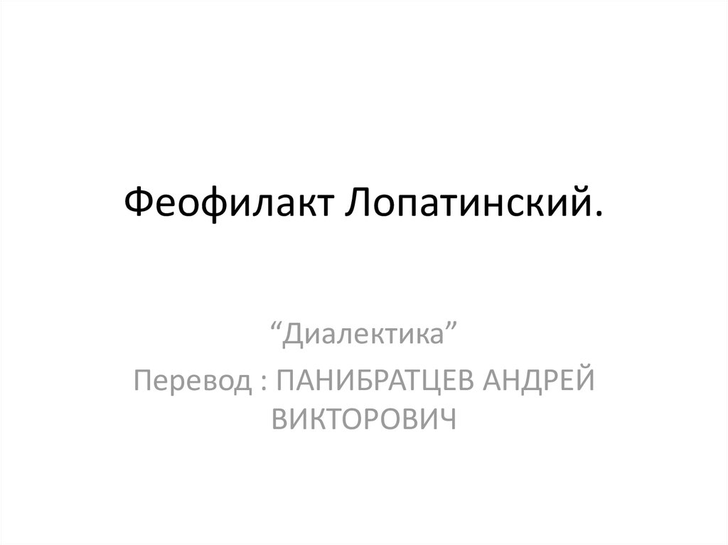“Диалектика”Перевод : ПАНИБРАТЦЕВ АНДРЕЙ