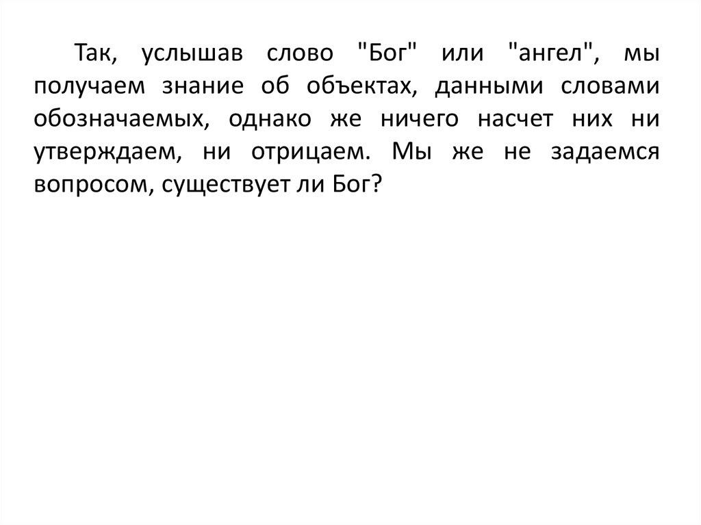 Так, услышав слово "Бог" или "ангел", мыполучаем знание об объектах, данными словами
