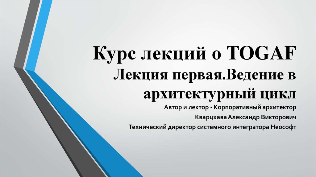 1. Курс лекций о TOGAF Лекция первая.Ведение в архитектурный цикл