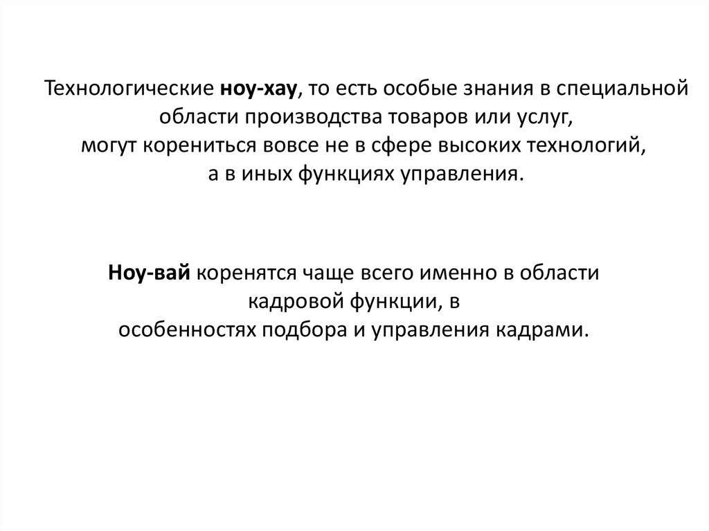 Технологические ноу-хау, то есть особые знания в специальнойобласти производства товаров или услуг,