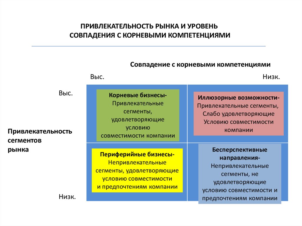 ПРИВЛЕКАТЕЛЬНОСТЬ РЫНКА И УРОВЕНЬСОВПАДЕНИЯ С КОРНЕВЫМИ КОМПЕТЕНЦИЯМИ