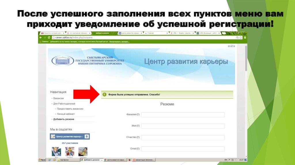 После успешного заполнения всех пунктов меню вамприходит уведомление об успешной регистрации!