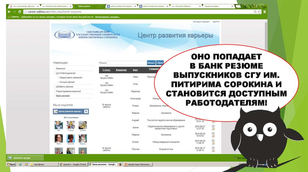 ОТКРЫВАЕМ ВКЛАДКУ«ЦЕНТР КАРЬЕРЫ»