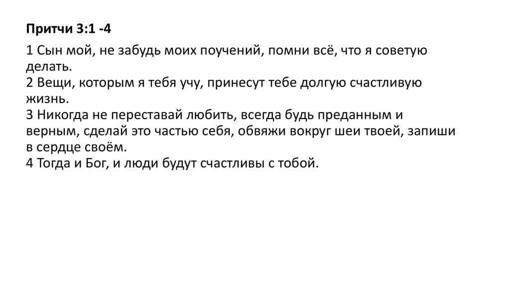 Притчи 3:1 -41 Сын мой, не забудь моих поучений, помни всё, что я советую