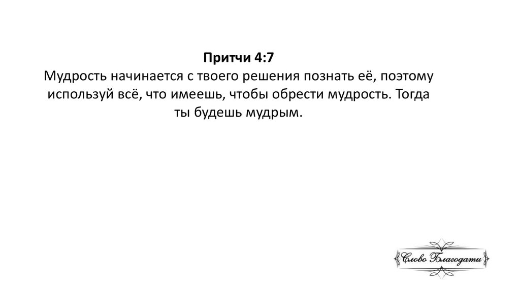 Притчи 4:7Мудрость начинается с твоего решения познать её, поэтому
