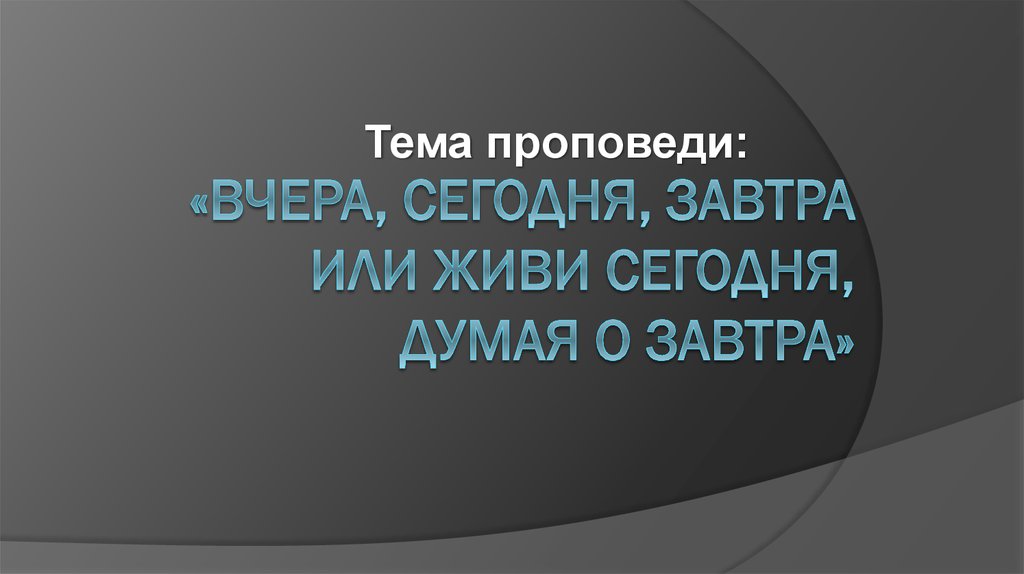 Тема проповеди: Вчера, сегодня, завтра, или живи сегодня, думая о завтра