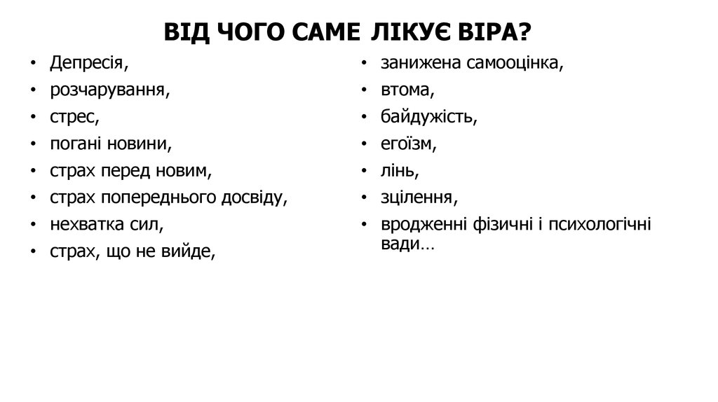 ВІД ЧОГО САМЕ ЛІКУЄ ВІРА?Депресія,