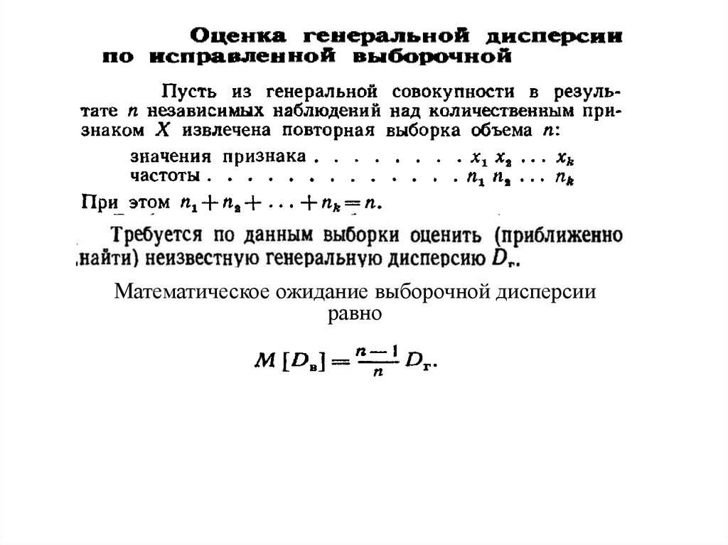 Математическое ожидание выборочной дисперсииравно