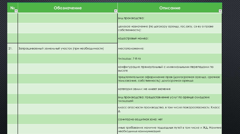Предполагаемые технические характеристики объектаСтандартный склад класса А: 30 000 кв.м