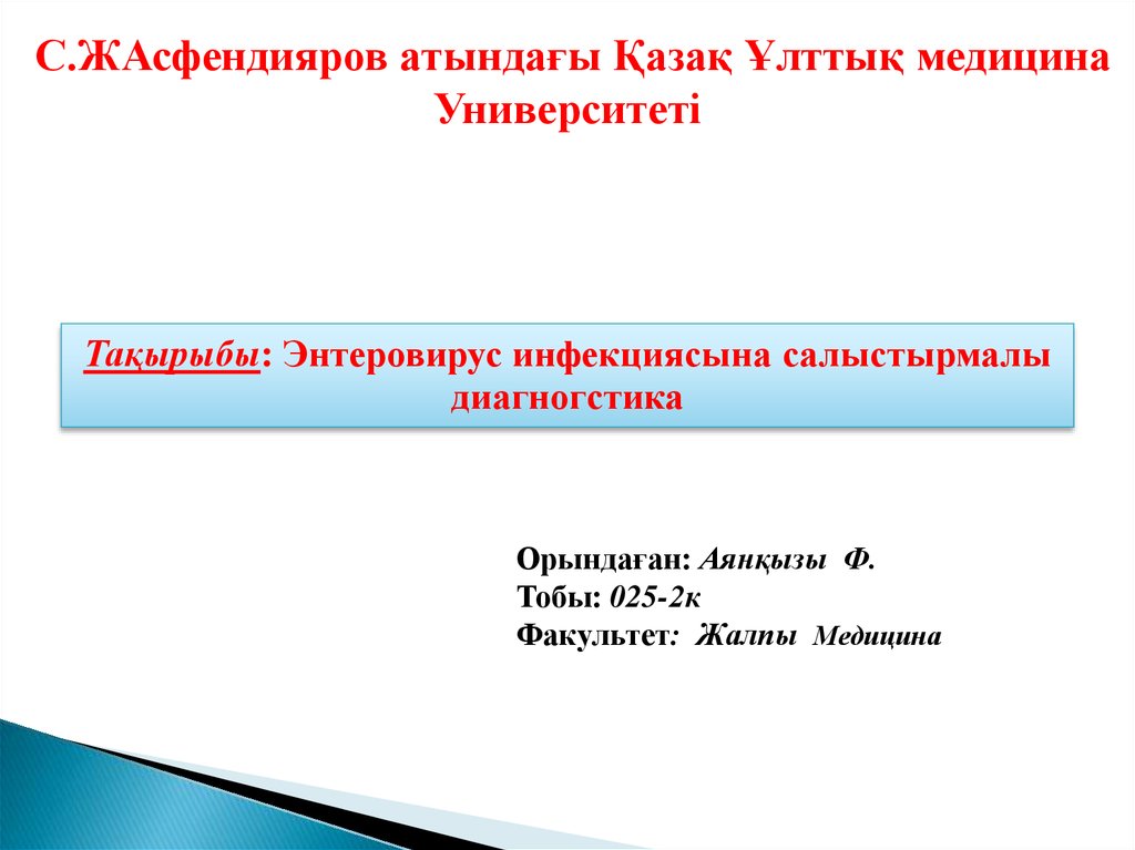 Тақырыбы: Энтеровирус инфекциясына салыстырмалы