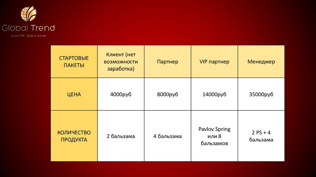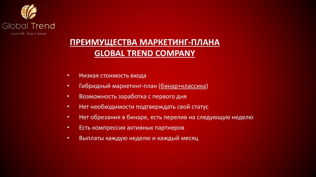Преимущества маркетинг-плана Global trend company