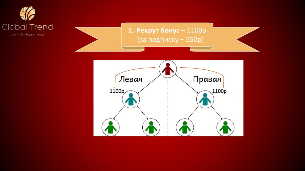 1. Рекрут бонус – 1100р(за подписку – 550р)