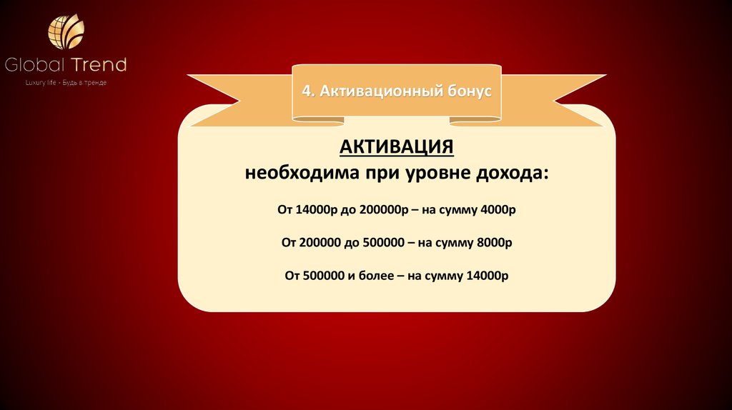 4. Активационный бонусАКТИВАЦИЯ