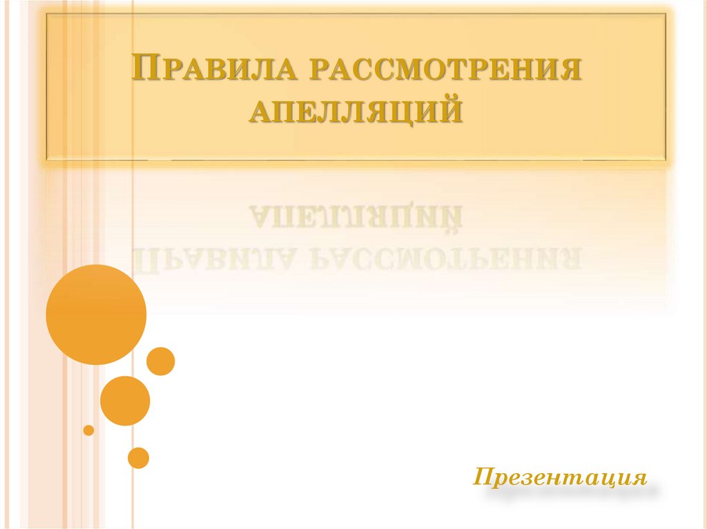 ПРАВИЛА РАССМОТРЕНИЯАПЕЛЛЯЦИЙ