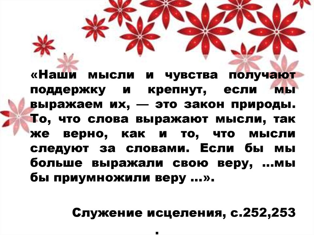 «Наши мысли и чувства получаютподдержку и крепнут, если мы