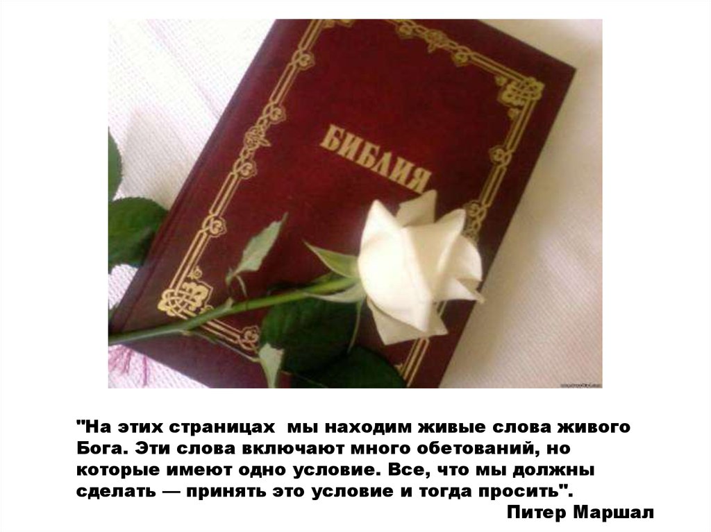 "На этих страницах мы находим живые слова живогоБога. Эти слова включают много обетований, но