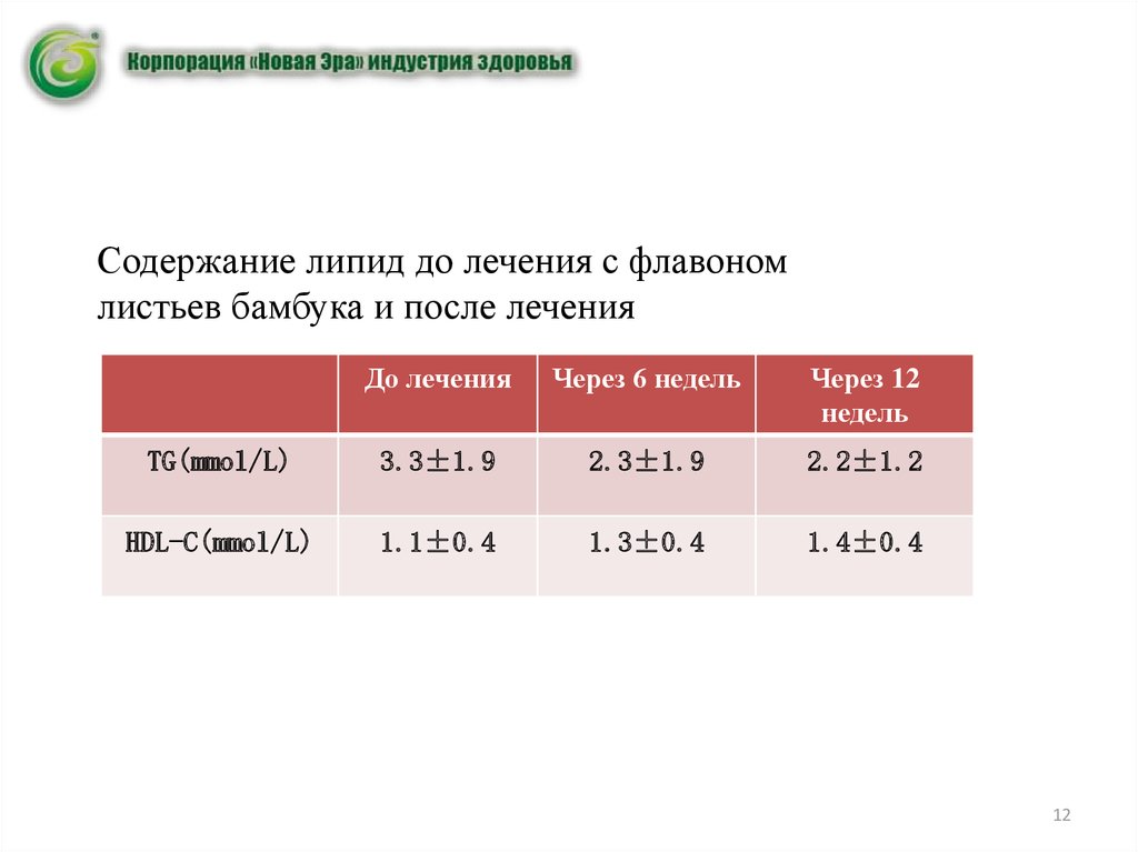 Содержание липид до лечения с флавономлистьев бамбука и после лечения