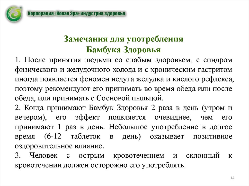 Замечания для употребленияБамбука Здоровья
