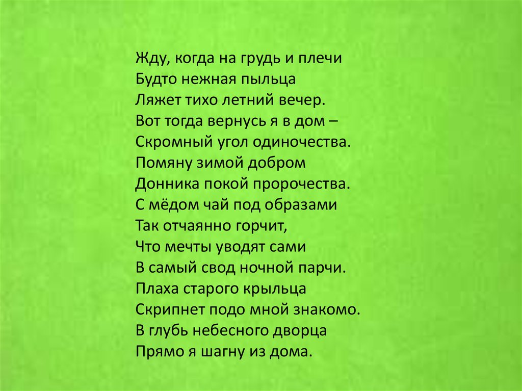 Жду, когда на грудь и плечиБудто нежная пыльца