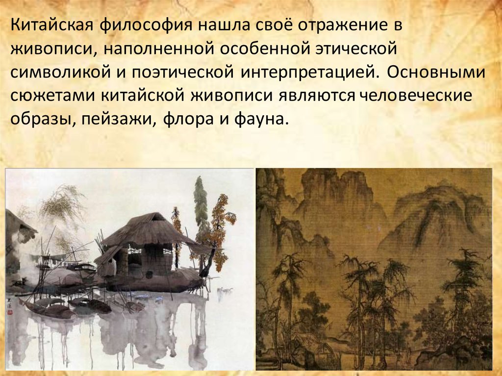 Китайская философия нашла своё отражение вживописи, наполненной особенной этической