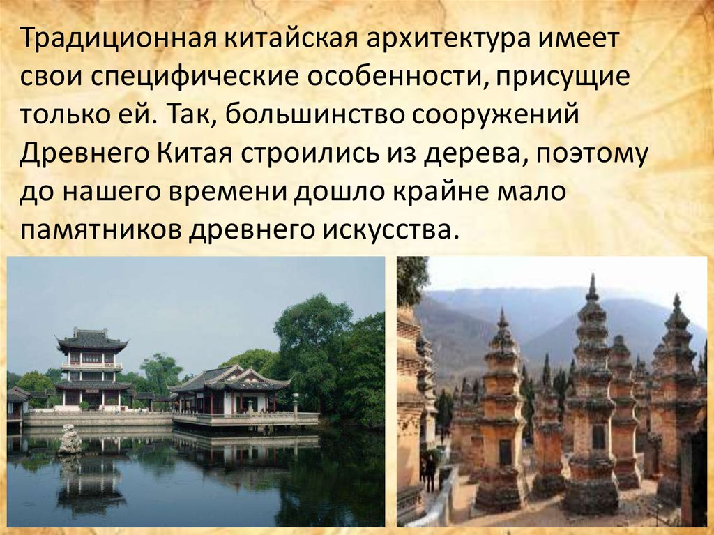 Традиционная китайская архитектура имеетсвои специфические особенности, присущие