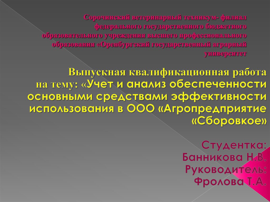 1. Сорочинский ветеринарный техникум- филиал федерального государственного бюджетного образовательного учреждения высшего
