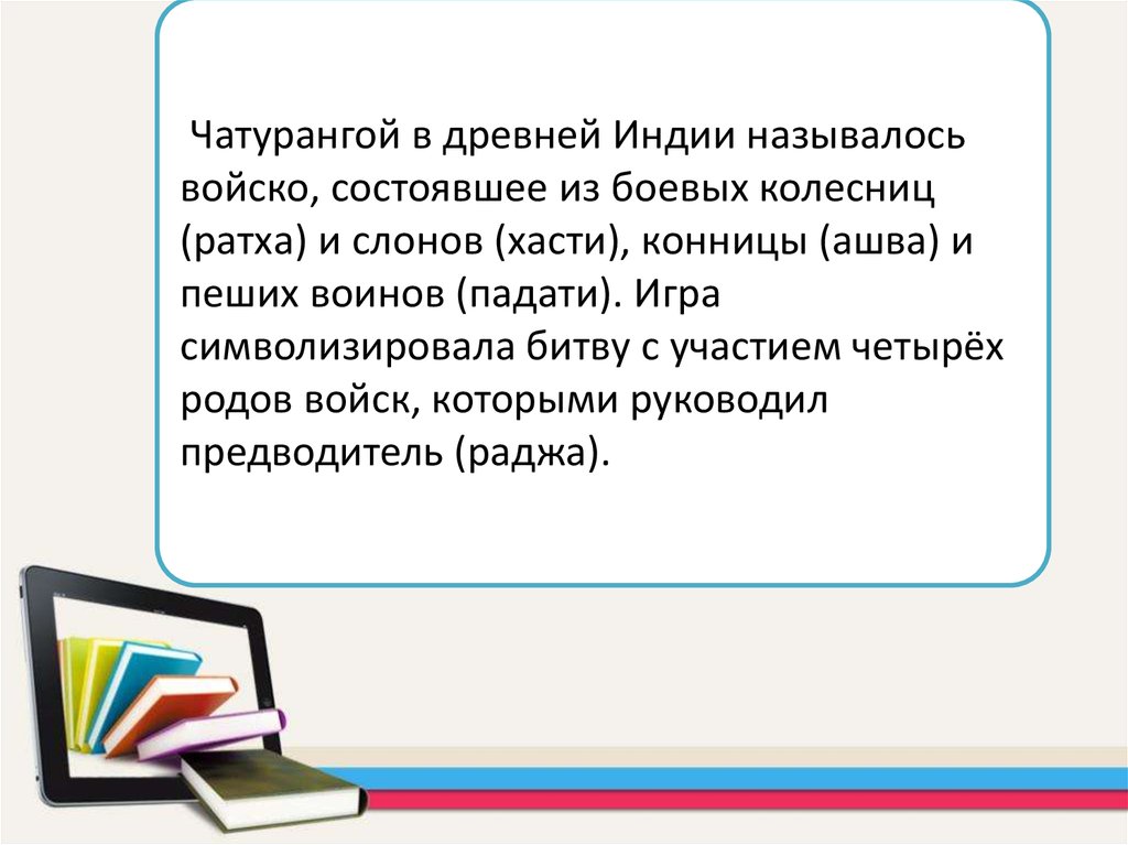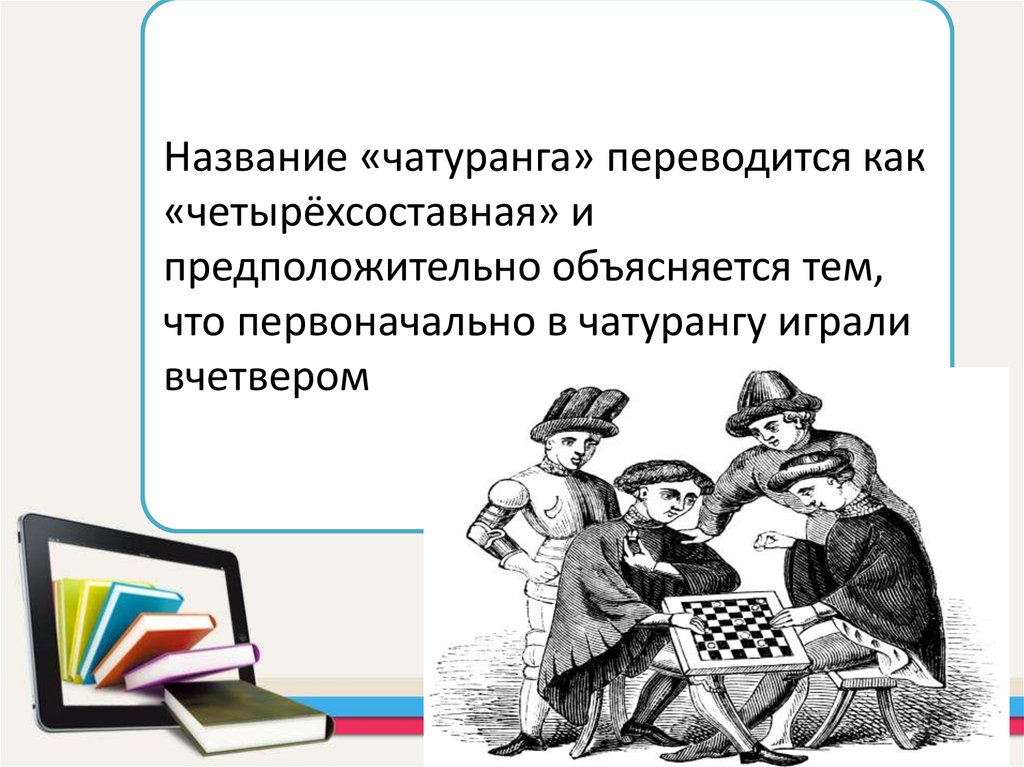 Название «чатуранга» переводится как«четырёхсоставная» и
