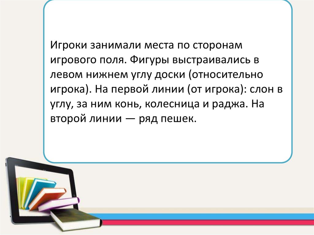 Игроки занимали места по сторонамигрового поля. Фигуры выстраивались в
