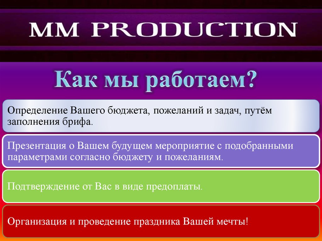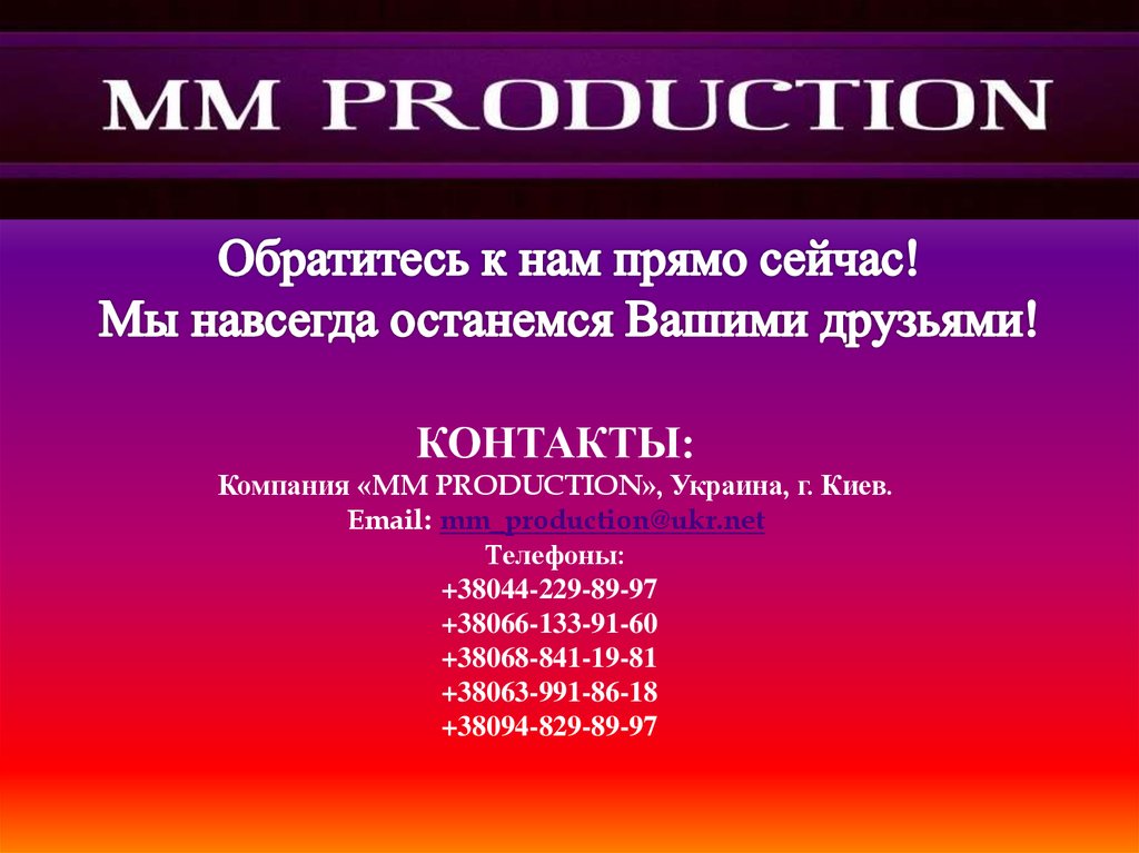 КОНТАКТЫ:Компания «MM PRODUCTION», Украина, г. Киев.