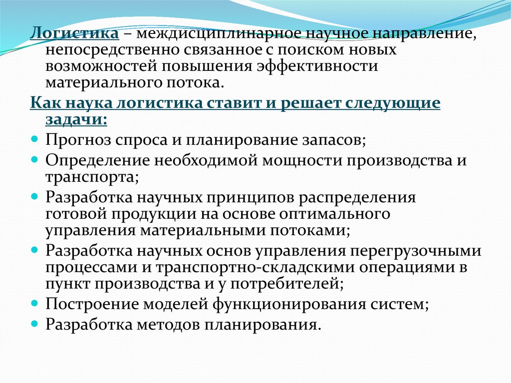 Логистика – междисциплинарное научное направление,непосредственно связанное с поиском новых