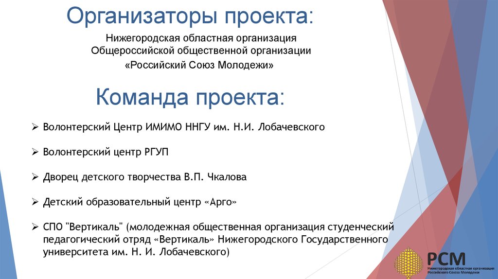 Нижегородская областная организация Общероссийской общественнойорганизации «Российский Союз Молодежи» info@rsmnn.ru