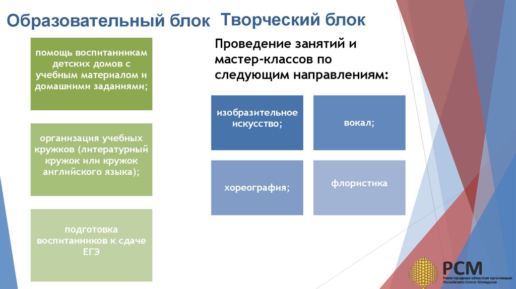 Образовательный блок Творческий блокпомощь воспитанникам