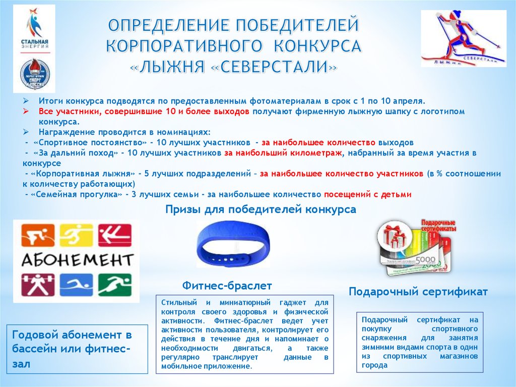 Итоги конкурса подводятся по предоставленным фотоматериалам в срок с 1 по 10 апреля.Все участники, совершившие 10 и более выходов получают фирменную лыжную шапку с логотипом