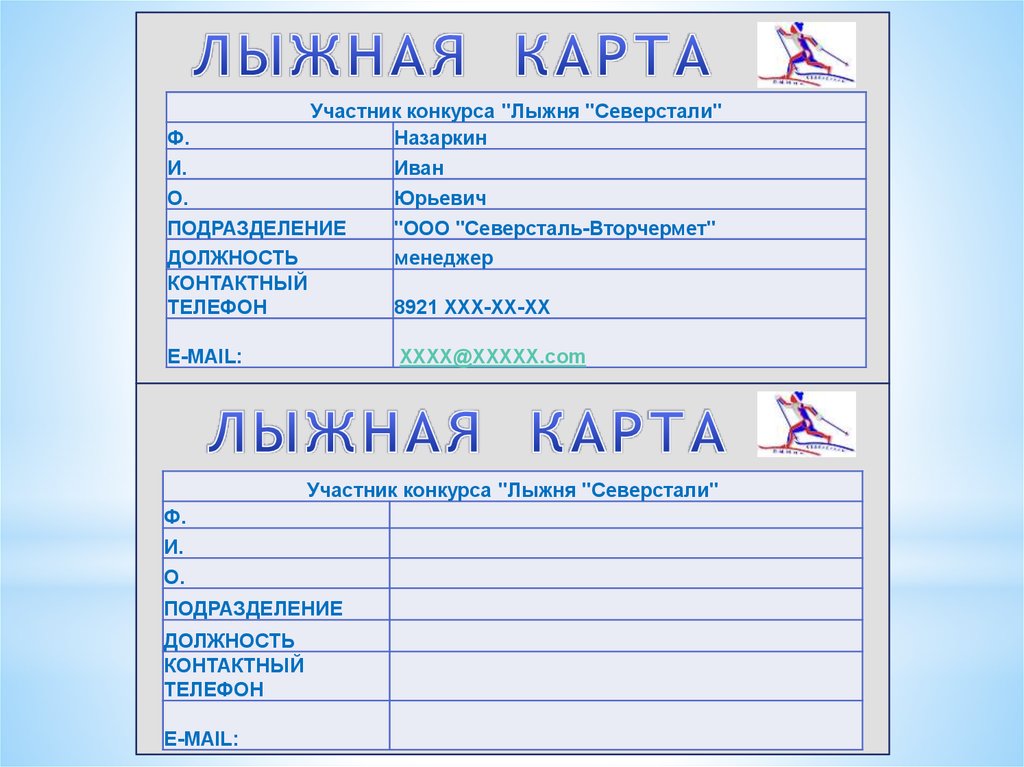 своему спортивному организатору «Лыжную карту». «Лыжные карты»