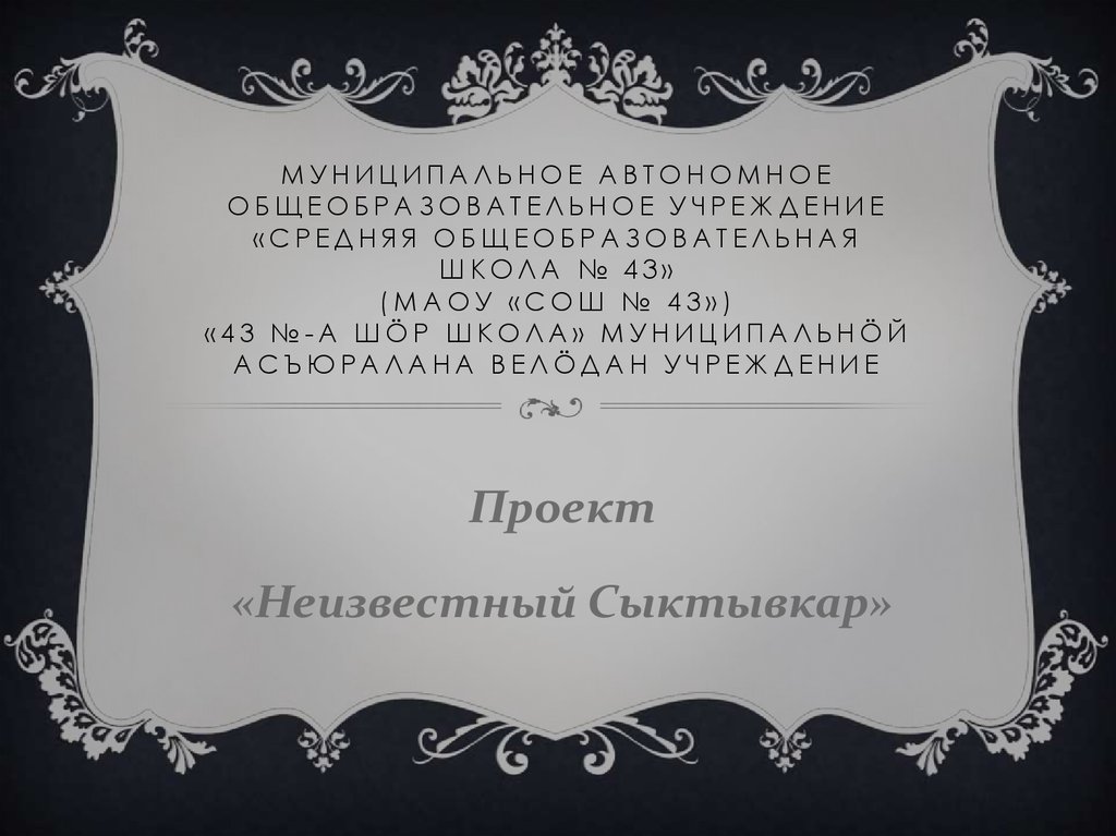 1. Муниципальное автономное общеобразовательное учреждение «Средняя общеобразовательная школа № 43» (МАОУ «СОШ № 43») «43 №-а Шöр