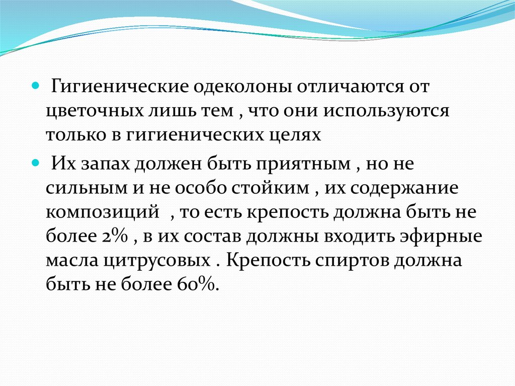 Гигиенические одеколоны отличаются отцветочных лишь тем , что они используются