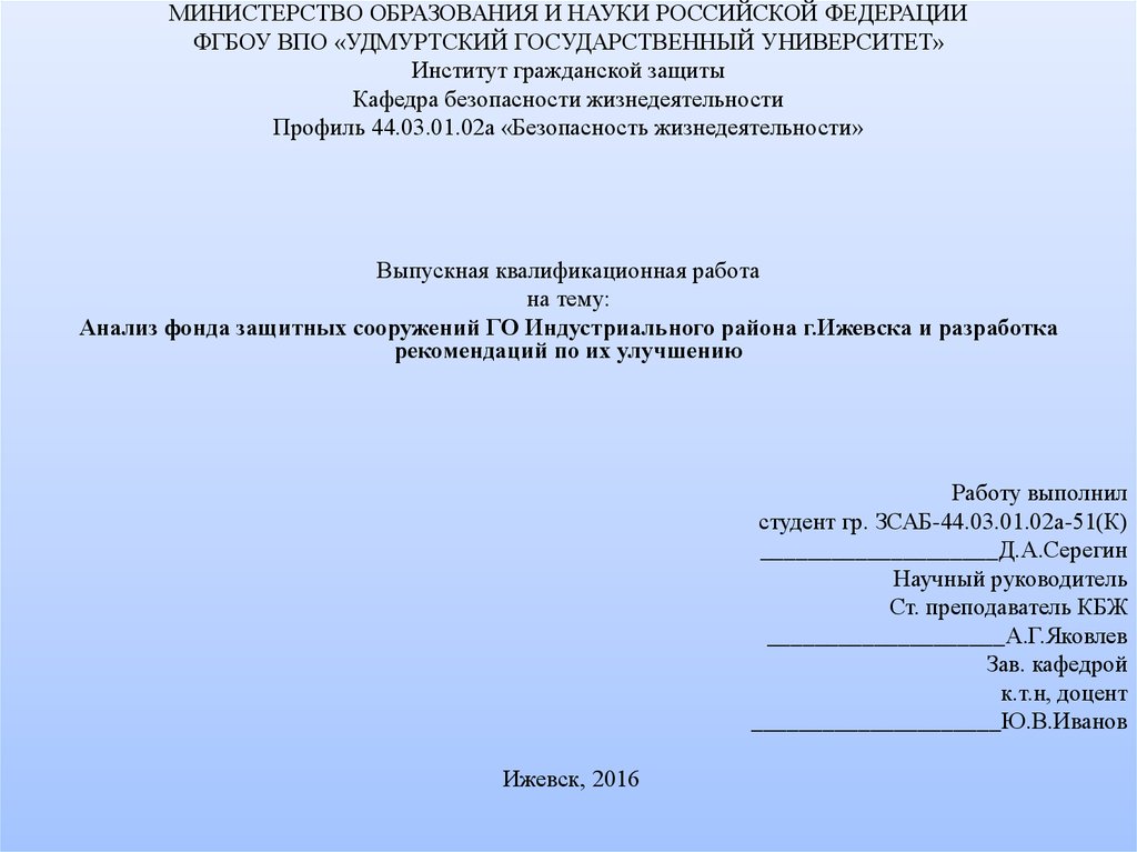 МИНИСТЕРСТВО ОБРАЗОВАНИЯ И НАУКИ РОССИЙСКОЙ ФЕДЕРАЦИИФГБОУ ВПО «УДМУРТСКИЙ ГОСУДАРСТВЕННЫЙ УНИВЕРСИТЕТ»