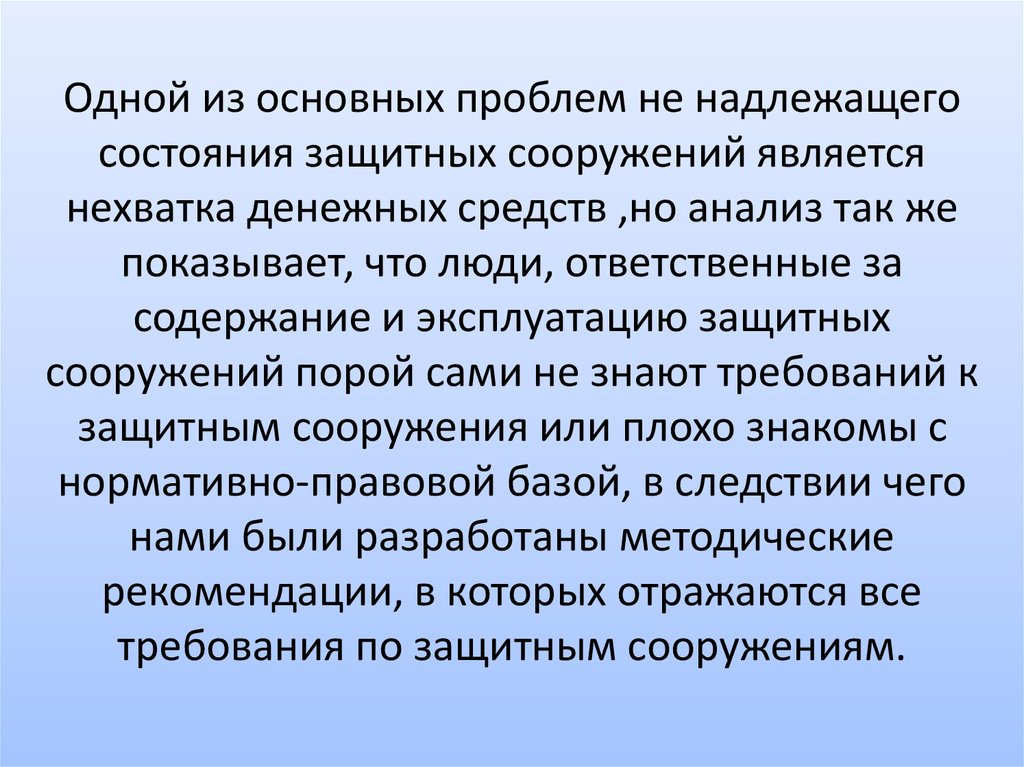 Одной из основных проблем не надлежащегосостояния защитных сооружений является