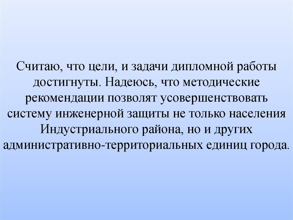 Считаю, что цели, и задачи дипломной работыдостигнуты. Надеюсь, что методические