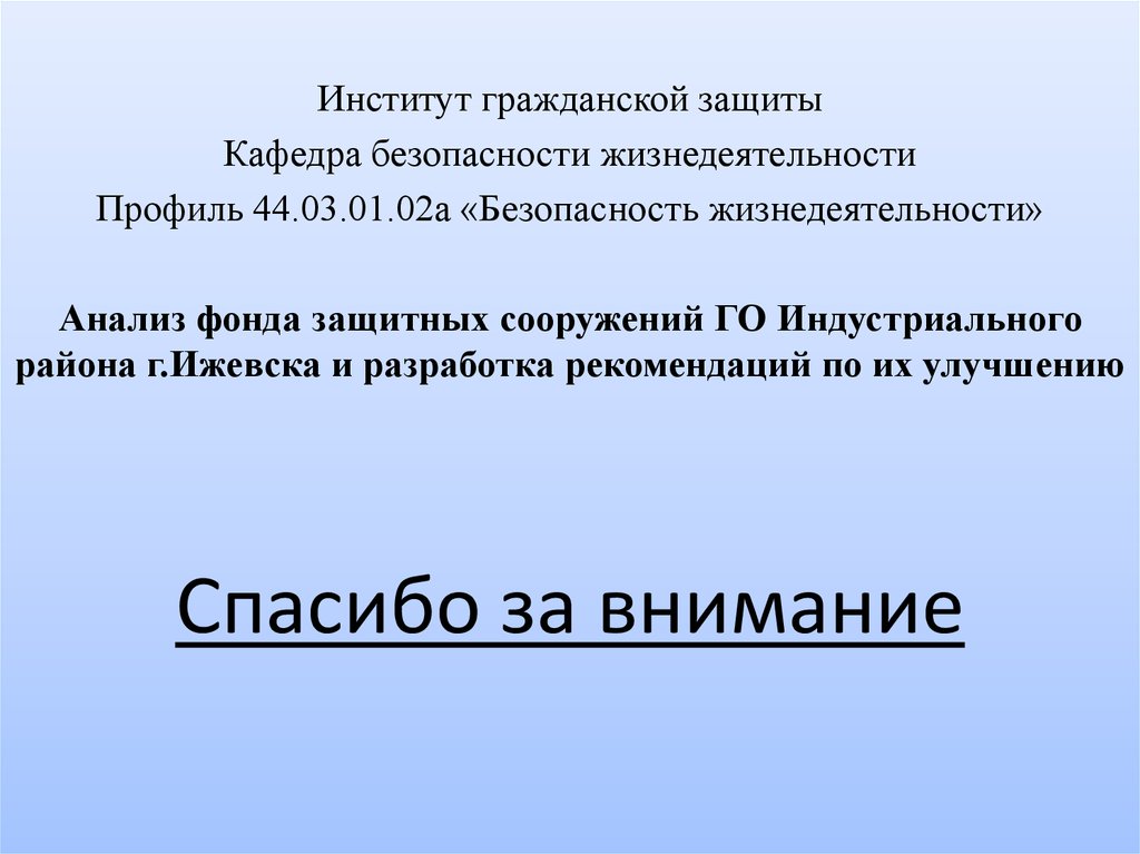 Анализ фонда защитных сооружений ГО Индустриального района г. Ижевска и разработка рекомендаций по их улучшению