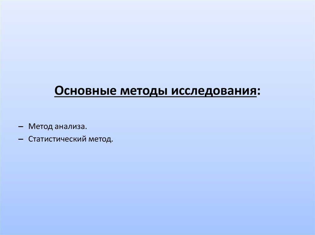 Основные методы исследования:– Метод анализа.