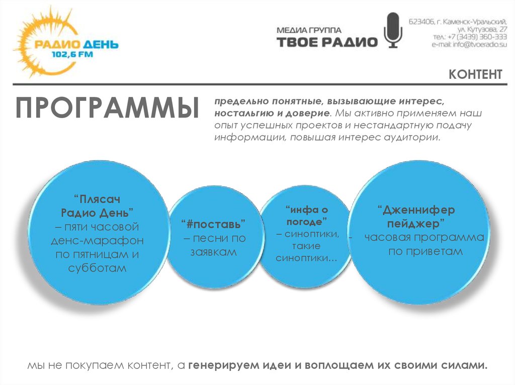 мы не покупаем контент, а генерируем идеи и воплощаем их своими силами.