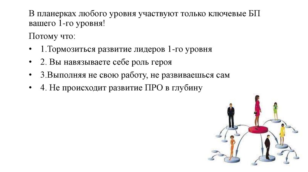 В планерках любого уровня участвуют только ключевые БПвашего 1-го уровня!