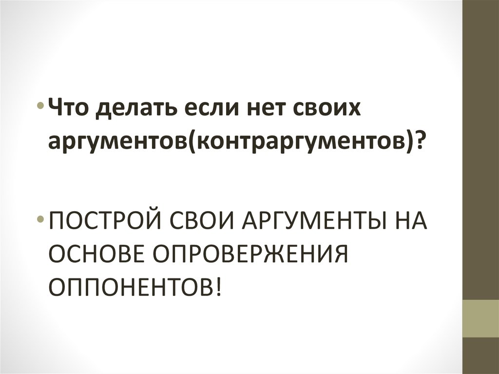 • ПОСТРОЙ СВОИ АРГУМЕНТЫ НА